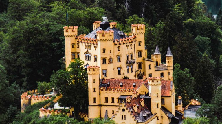 Direkt neben dem berühmten Schloss Neuschwanstein befindet sich das ältere Schloss Hohenschwangau, in dem die Eltern des Märchenkönigs wohnten.