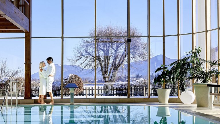 Was wäre ein romantisches Wochenende für zwei im Allgäu ohne wohltuende Wellness? In unserem Private SPA mit Dampfbad, Aroma-Whirl-Wanne und Wasserbett genießen Sie die Zeit zu zweit, nur mit Ihrem Schatz. Auch die Massageliegen stehen Ihnen für ein Peeling oder eine Massage zur Verfügung. Sie erhalten von uns ein Glas Sekt und die perfekte Wohlfühlathmosphäre. Natürlich können Sie sich mit Ihrer zweiten Hälfte auch in unserer Sauna- und Poolwelt ausgiebig entspannen. Statten Sie der Zirbensauna, der Almsauna, der finnischen Sauna und der Panoramasauna einen Besuch ab und schwitzen Sie den Alltag einfach aus. Anschließend ziehen Sie in unserem Panoramahallenbad oder dem Außenpool, der mit reinstem Grander-Wasser befüllt ist, Ihre Bahnen. Lassen Sie sich von den Massagedüsen sanft massieren und genießen Sie das Gefühl der Losgelöstheit, das Sie erfüllt.
