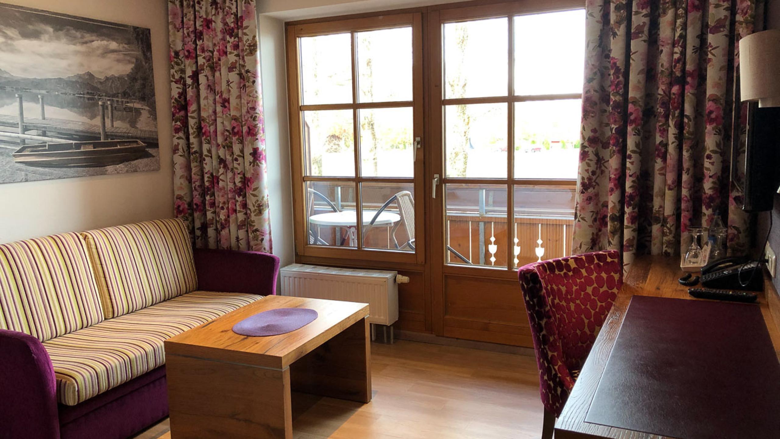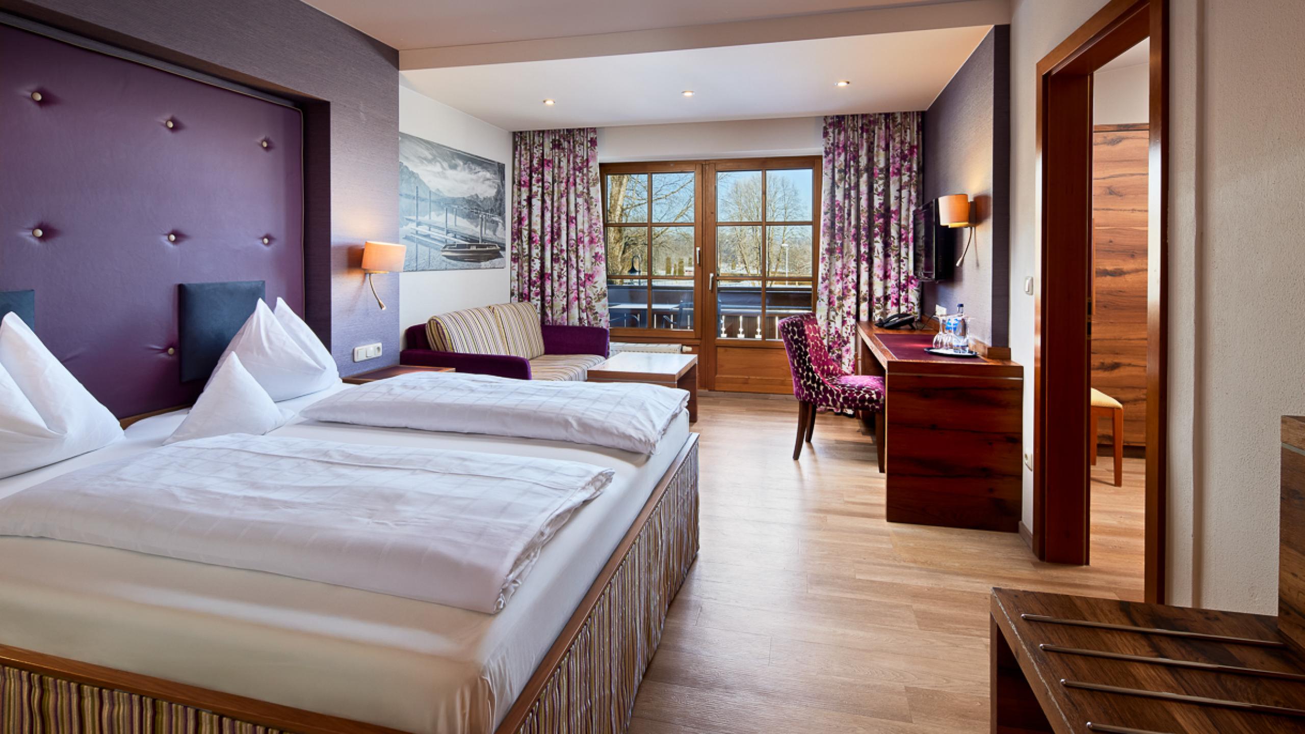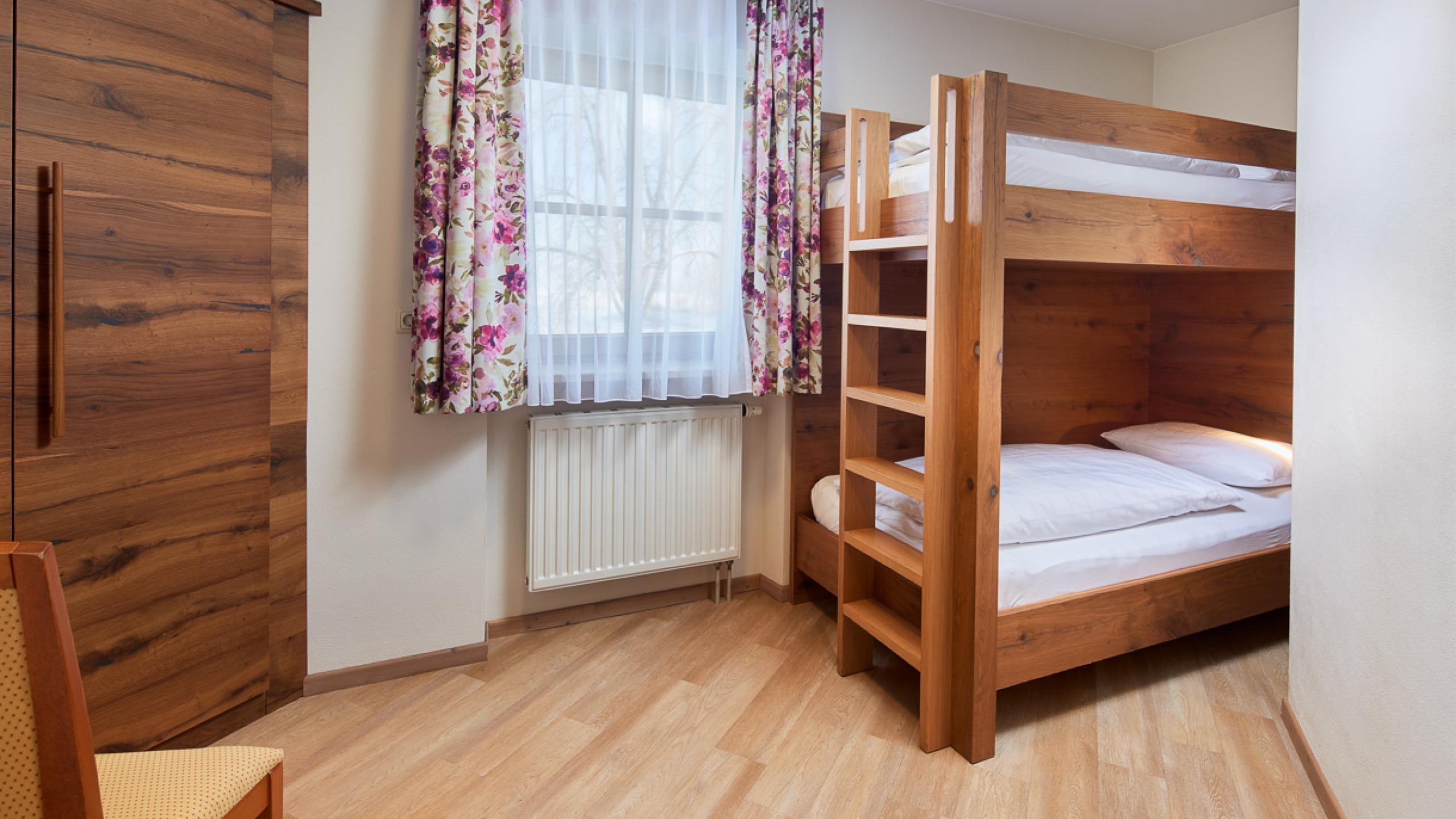 Unsere Familienzimmer (Bett 1,80 x 2,00 m) haben ca. 30-35m² und verfügen über einen Schlaf-/Wohnraum und ein zusätzliches Kinderschlafzimmer mit zwei Stockbetten oder zwei Betten nebeneinander. Sie finden neben der Grundausstattung eine Badetasche mit Saunatüchern, Bademäntel für den Wellnessbereich sowie einen Leih-Rucksack für Wanderungen.